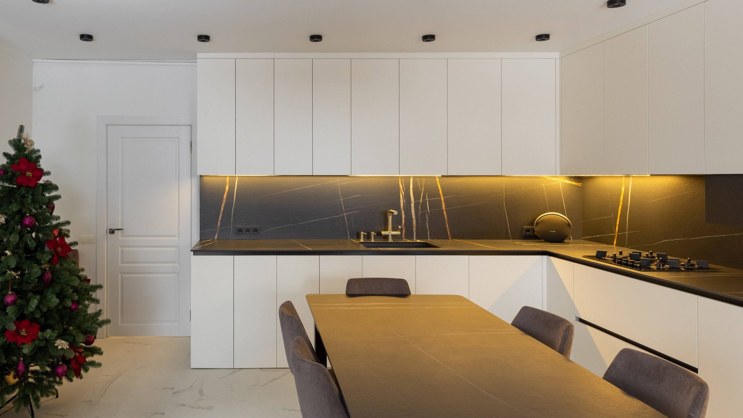 Da, ABBIAMO cucine realizeaza nu doar bucatarii la comanda, ci si dulapuri, mobilier pentru living, mobilier pentru baie si mese personalizate, inclusiv din acelasi blat folosit la bucatarie, pentru un aspect unitar si elegant in toata locuinta.