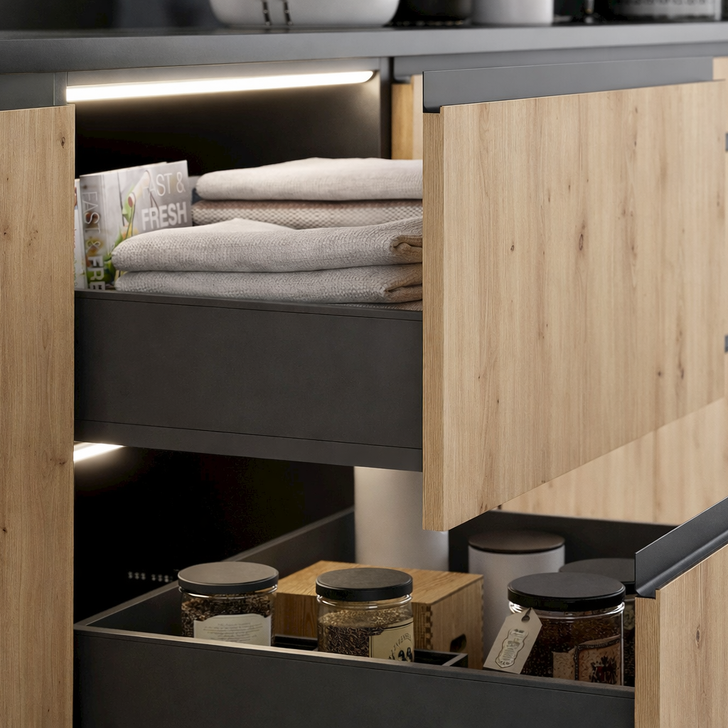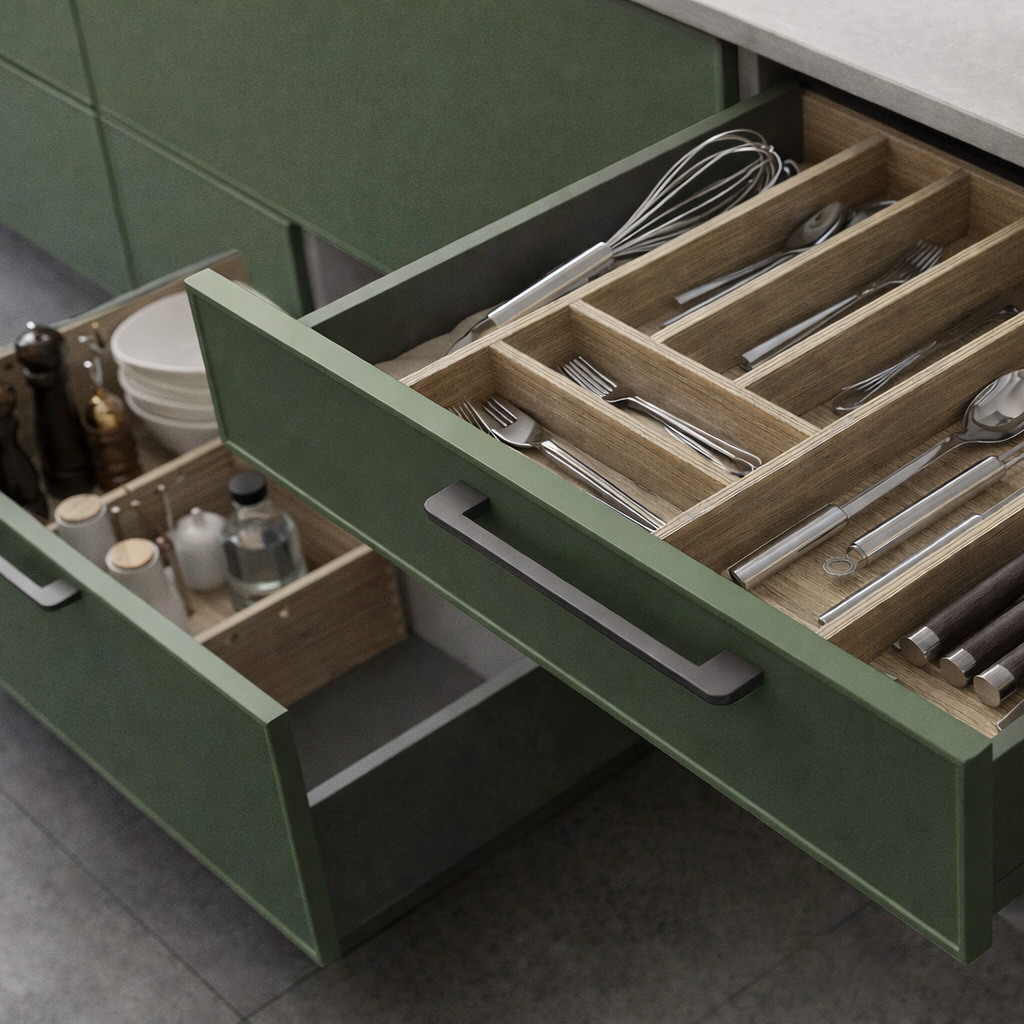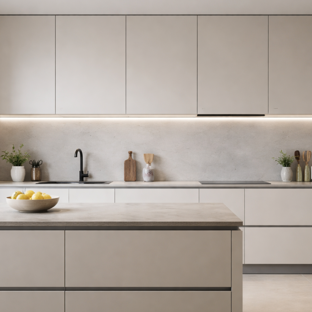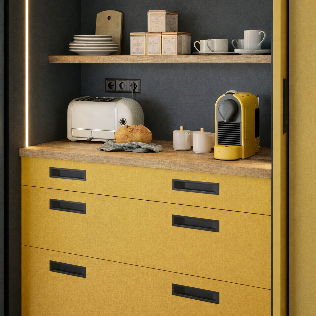 Potrivit pentru usi cu margini drepte, acest sistem fara maner permite un design minimalist si o linie uniformă a fronturilor.