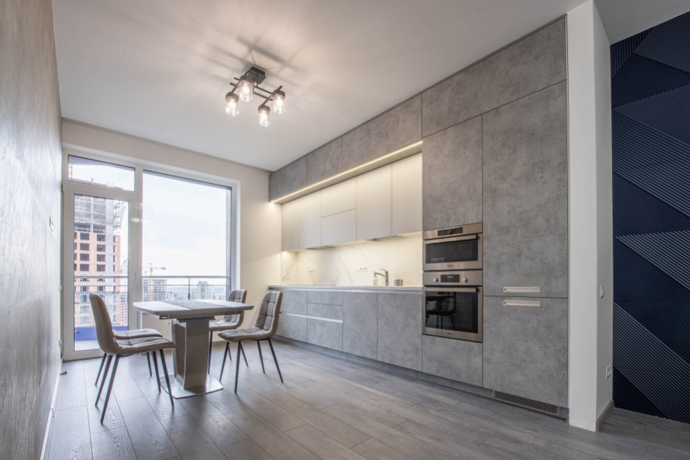 Cuptorulcu microunde, plita si frigiderul sunt perfect incorporate in design, oferind un aspect unitar si modern.
